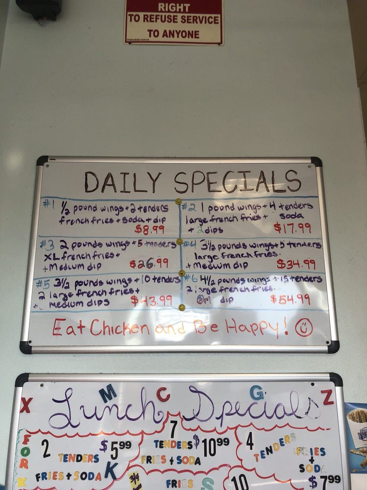 36 pieces, XL Fries, (L) Ranch or Bleu cheese. Soda not included.Choose 4 Flavors