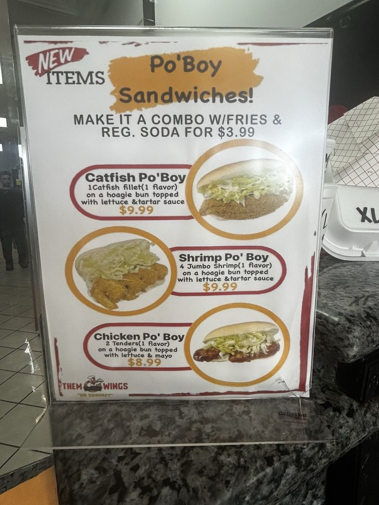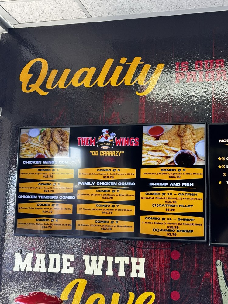 Prepare your taste buds for a flavor-packed journey at Them Wings in Las Vegas. This casual yet vibrant restaurant is a haven for wing lovers and offers a wide range of delicious options. From crispy chicken wings to juicy chicken tenders, the menu is filled with mouth-watering choices. You can indulge in combos like the Chicken Wings Combo or customize your order with A'La Cart options. The reviews rave about the flavorful wings, crispy fries, and excellent service. Whether you prefer Cajunlemon pepper or garlic Parmesan, the wings at Them Wings are cooked to perfection and coated with just the right amount of sauce. Don't miss out on their catfish and shrimp dishes, which are equally impressive. With a welcoming atmosphere and appetizing food, Them Wings is a definite must-visit for a memorable dining experience.