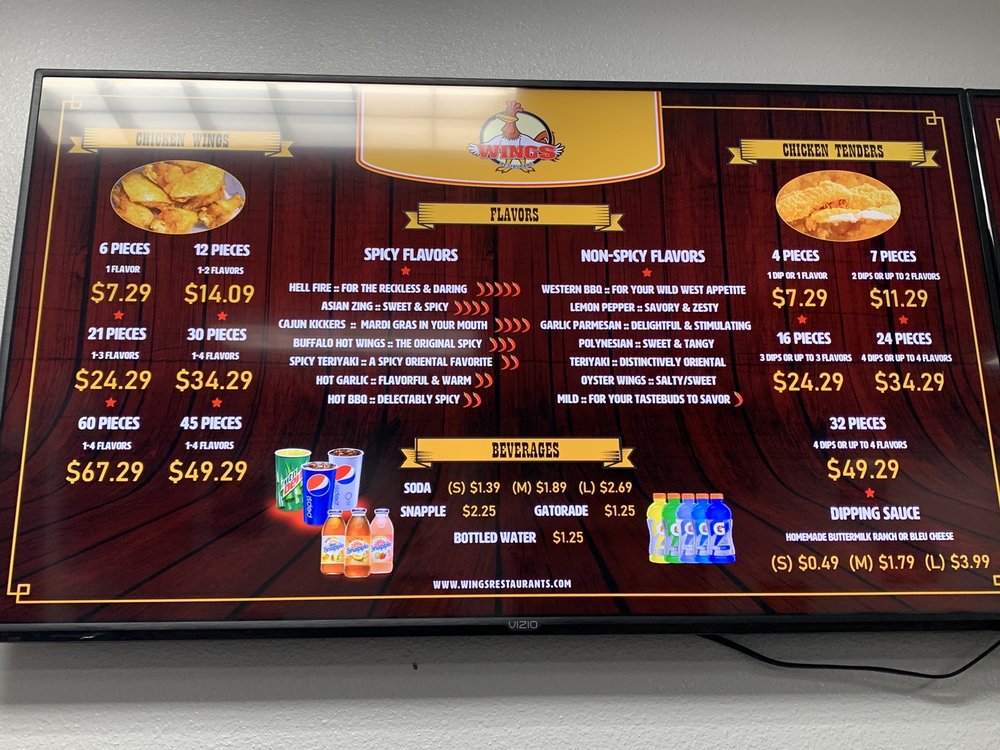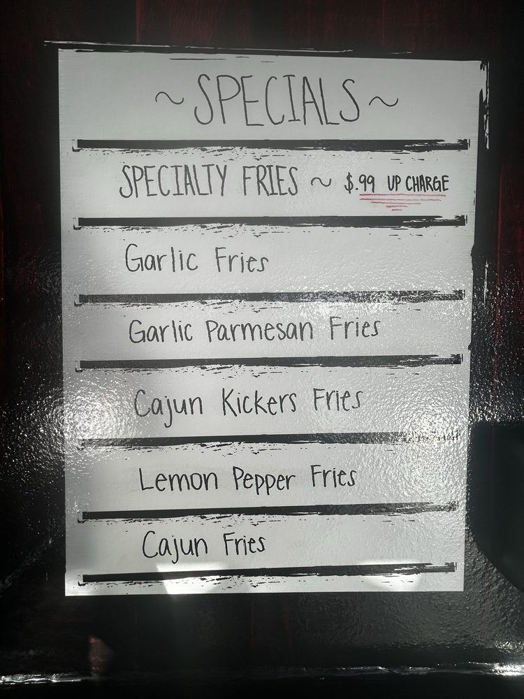 27 pieces, XL Fries, (L) Ranch or Bleu cheese. Soda not included.Choose 4 Flavors